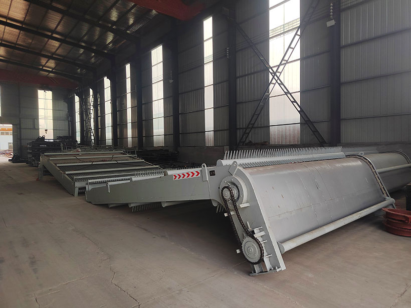 清除附着在拦污栅上杂物(一般称污物)的机械设备。在污物较多的水库或河道上,为保证水电站或泵站得以安全、正常地运行,常需设置清污机,以便在不停机和不放空水库的条件下进行清污。 回转齿耙式清污机一般与拦污栅做成整体,动力装置分为液压马达驱动和电动机驱动,回转齿耙式清污机的清污刮板传动装置宜采用回转式输送链。